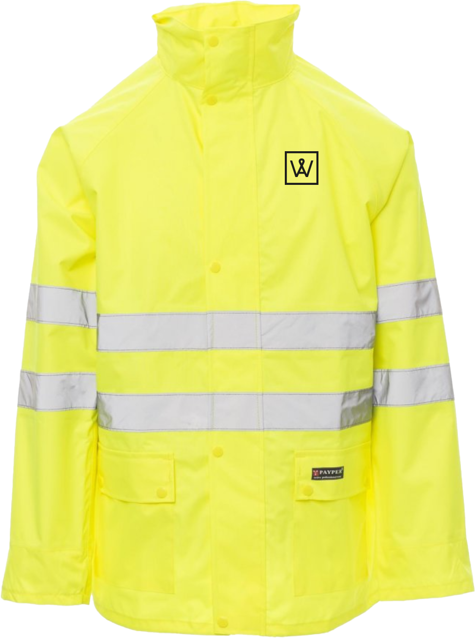 BestellenGut sichtbare Regenjacke mit PU-Beschichtung, 3M-Streifen, Raglanärmel, Innenreissverschluss aus Nylon und Patte mit Druckknöpfen, im Kragen einrollbare Kapuze, Kordelzug in der Taille, gerader Ärmelabschluss mit darunter liegendem elastischem Ärmelbündchen, zwei Blasebalgtaschen mit Patte. Wärmeversiegelte Streifen und Nähte.